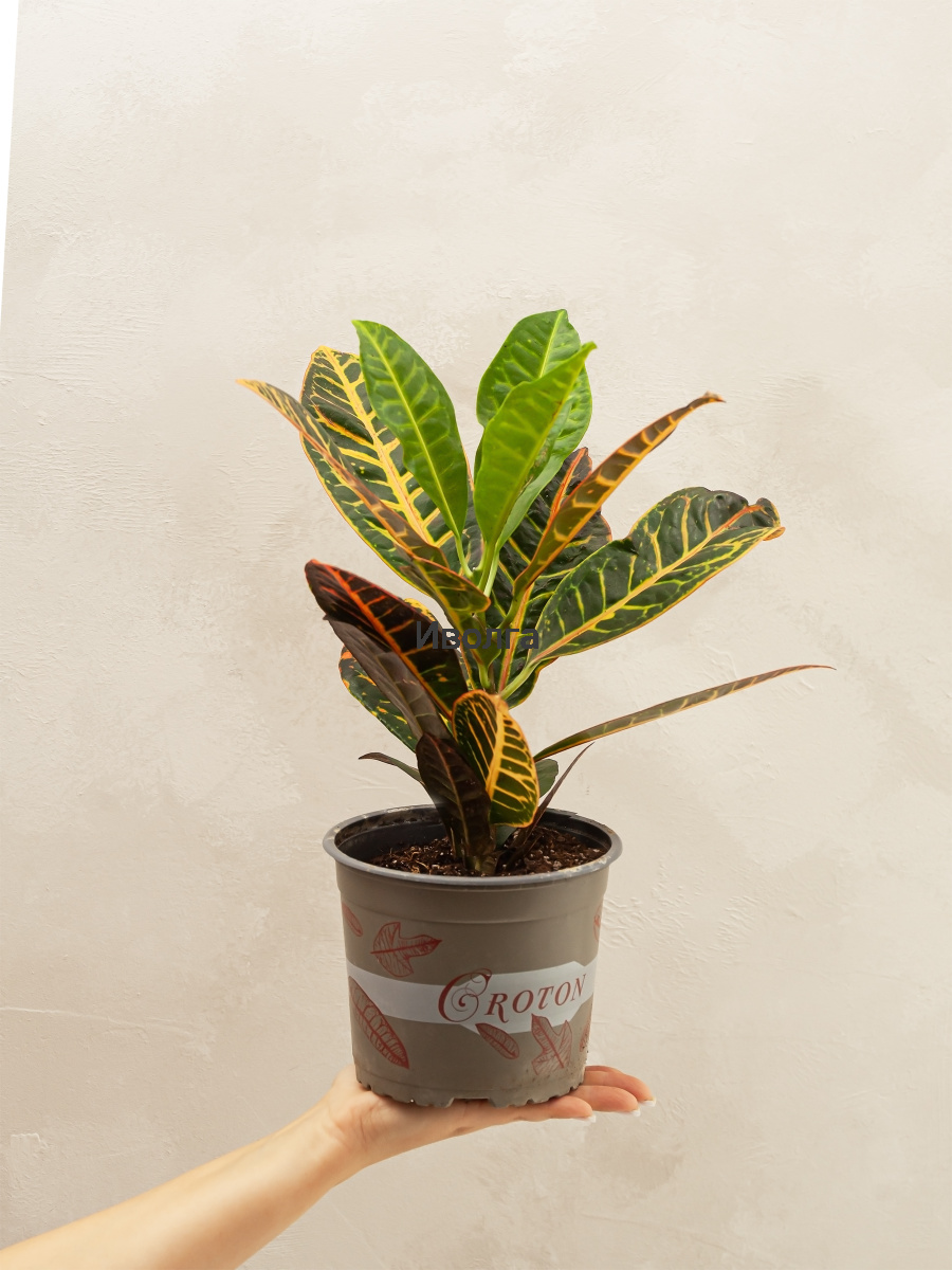Кодиеум «Петра» достаточно быстро растет и охотно ветвится, что позволяет ему даже в солидном возрасте выглядеть пышно и интересно.